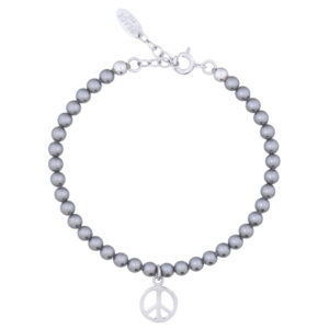 Swarovski Crystal Pearl Bracelet Polished Silver Peace Charm