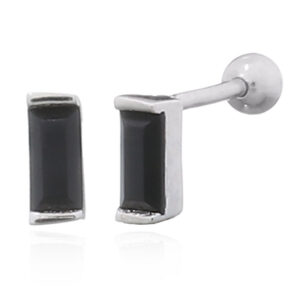 Name: CZ Black Emerald Shaped 925 Silver Stud Sphere Closure Earrings