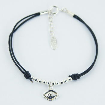 Name: Gemstone-Studded Sterling Silver Polyester Bracelet