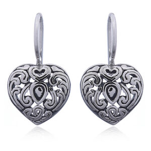 Name: Antiqued Silver Heart Earrings Embossed Design