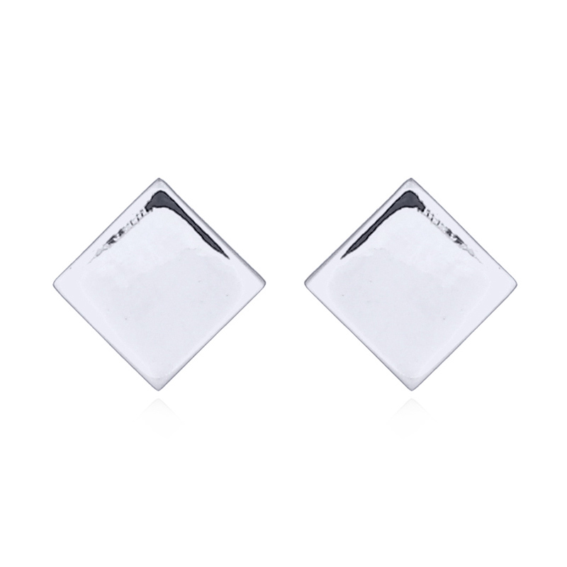 6 mm Diamond square shaped and 925 silver stud earrings. Flash rhodium plated.