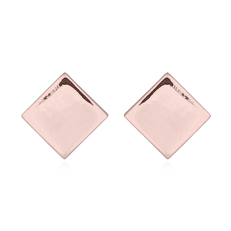 6 mm Diamond square shaped and 925 silver stud earrings. Flash rose gold plated.