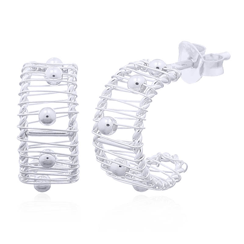 Enhance your product range with these charming stud earrings featuring rolling silver balls on a curved design. Their contemporary style and lightweight feel make them an attractive choice for customers looking for unique yet elegant pieces.