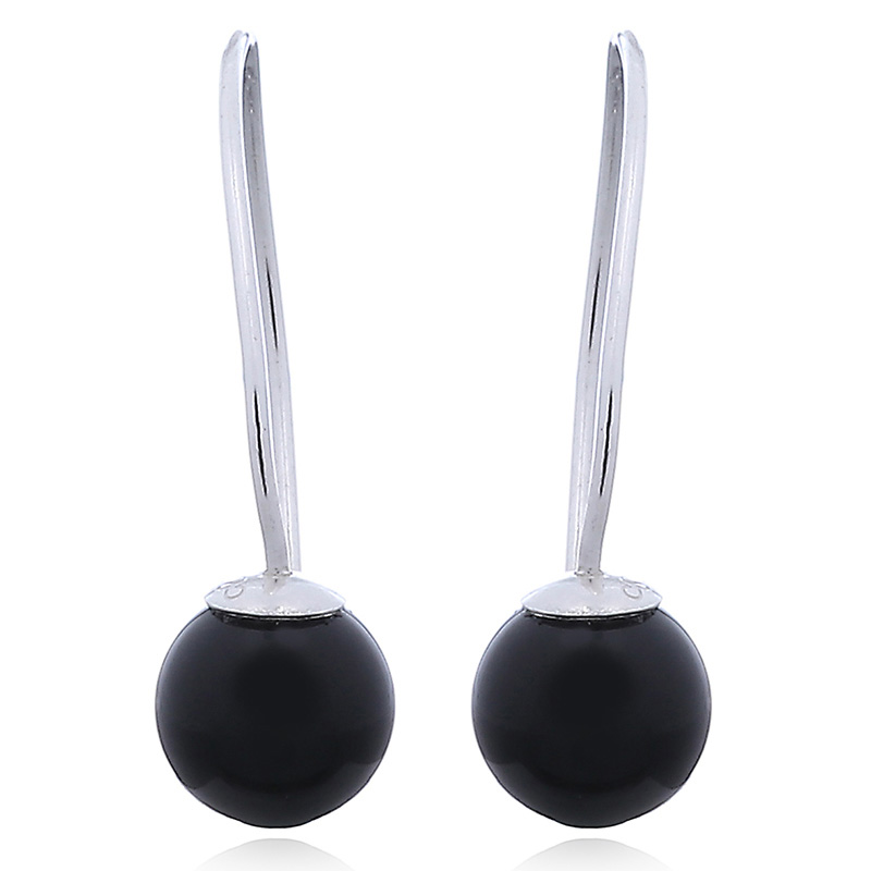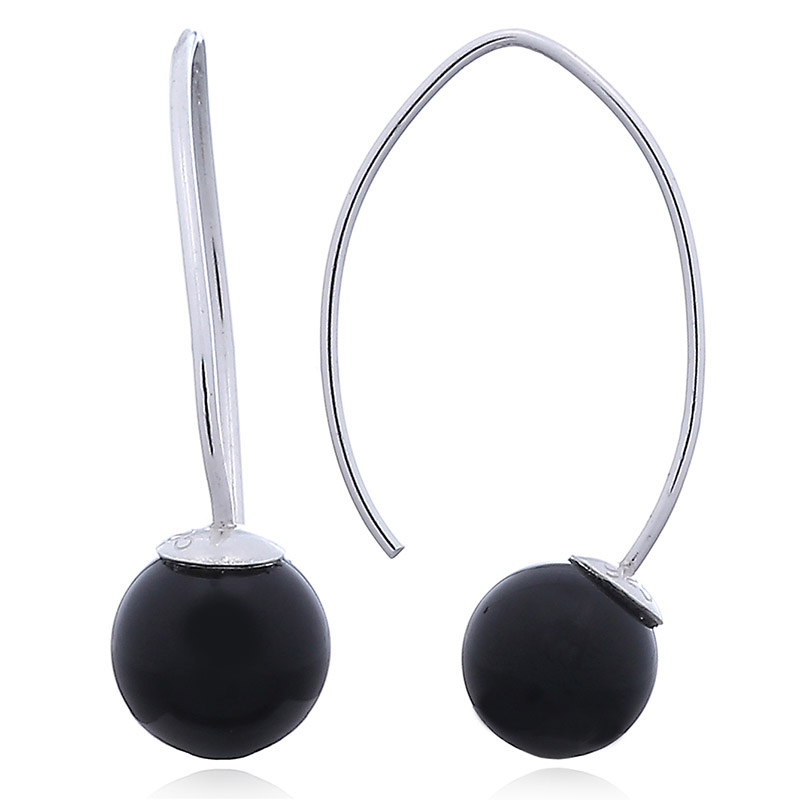 Cute Hallmarked 925 silver Black Agate earrings that feature the glossy black gemstone beads like cherries on the tree. A modern silver gemstone jewelry that showcases the gemstones set in round silver caps and on generously curved stick hangers alluring with their bright shine generates an elegant contrast. Trendy silver earrings that flank the features beautifully with an adorable young Planet Silver jewelry design.