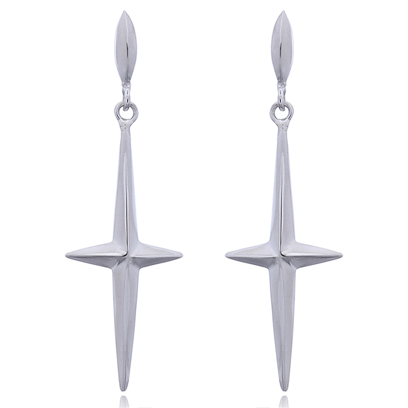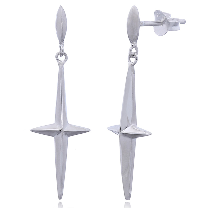 A beautiful pair of sterling silver high polished cross dangling in marquise shaped stud earrings.