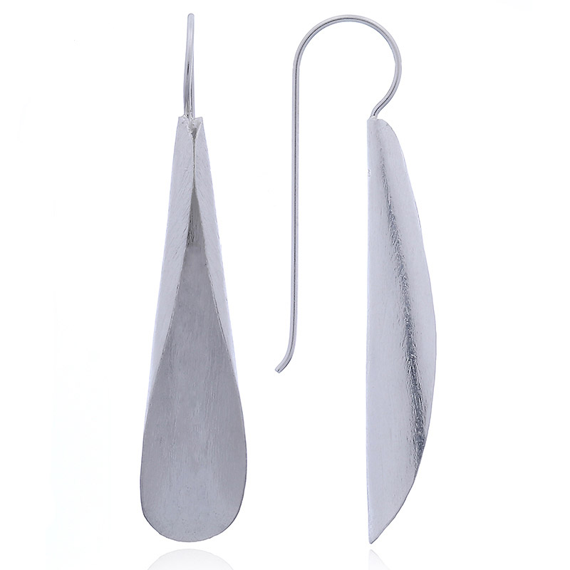 925 Sterling Silver Drop earrings feature large gorgeous concave drops creating an adorable elegant shape with curling outwards sides at the tapered top. On fixed hooks these silver Drop earrings add a superb silver luster standing out with the brushed finish surface that brings a striking impulse to the looks. Trendy Hallmarked 925 Sterling Silver jewelry that embellishes women with a high fashion pair of earrings.