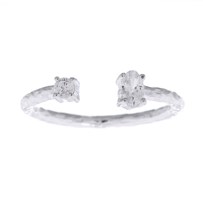 Designed for texture and brilliance, this 925 silver open ring showcases a striking hammered finish that catches the light beautifully. The subtle shimmer of cubic zirconia enhances its artisanal charm, making it a standout addition for retailers seeking refined yet distinctive pieces.