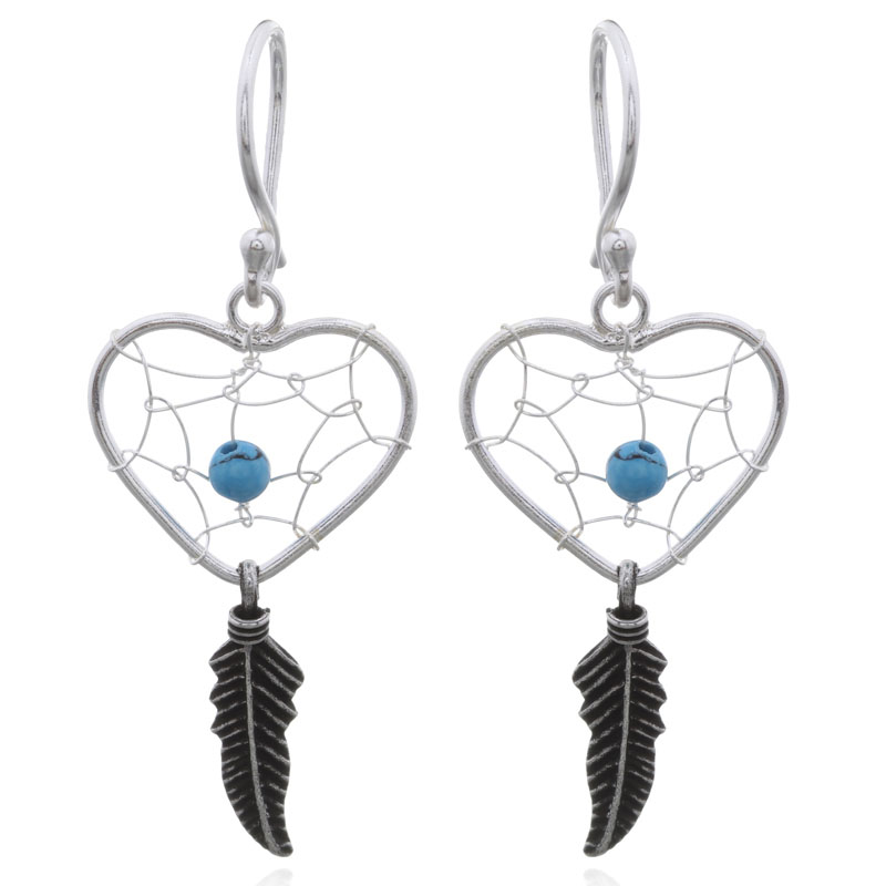 Dangle earrings with a heart design and synthetic turquoise are perfect for those who love romantic styles. Retailers can attract customers looking for charming accessories that express love and individuality in a fashionable way.