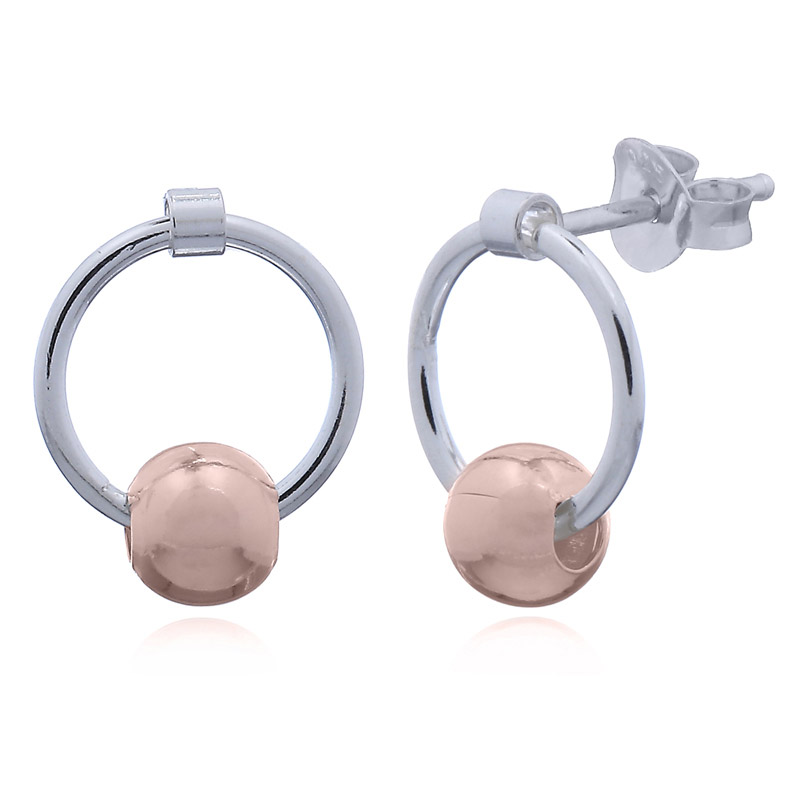 Very simple and modern sterling silver hoop and a rose gold plated 5mm ball stud earring.