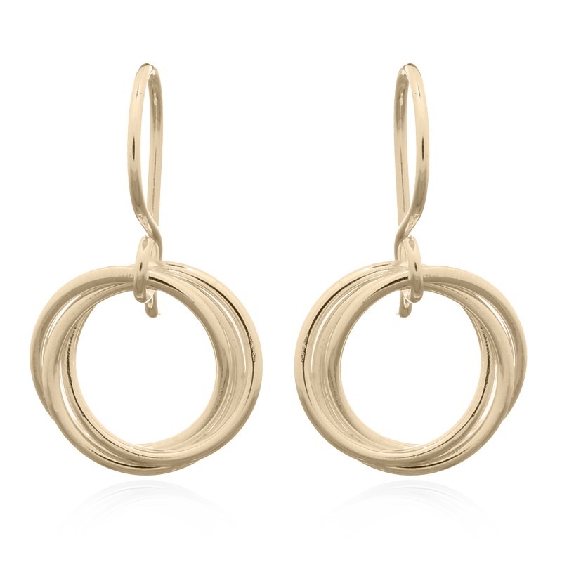 Intertwined wirework creates a stunning visual effect in these gold-plated dangle earrings. They blend modernity with elegance, appealing to stylish customers. Don’t miss the opportunity to offer this unique design!