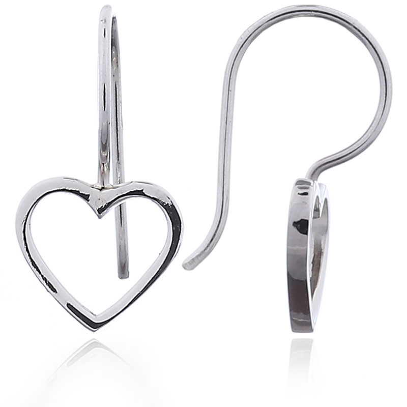 Pair of 925 silver earrings featuring the outline of a heart. Less equals more with the beauty and quality of this pair of minimalist heart earrings.