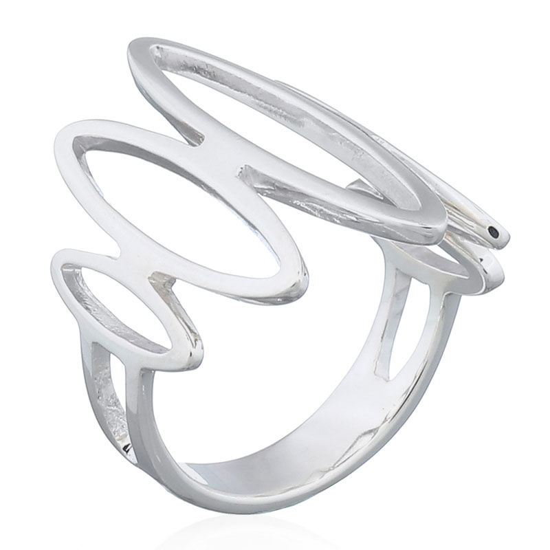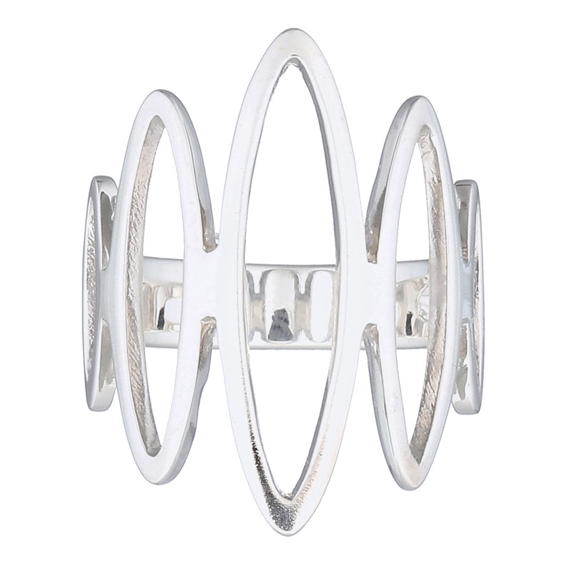 Symmetrical design of marquise shapes displaying the largest in the center and scaling down in size towards the sides are creating the open and stylish 925 silver Unique Planet Silver designer ring. Highly polished silver smoothed edges of the elegant open shapes and a stunning band create a ring that enhances the hand of a woman with a good portion of feminine style.
