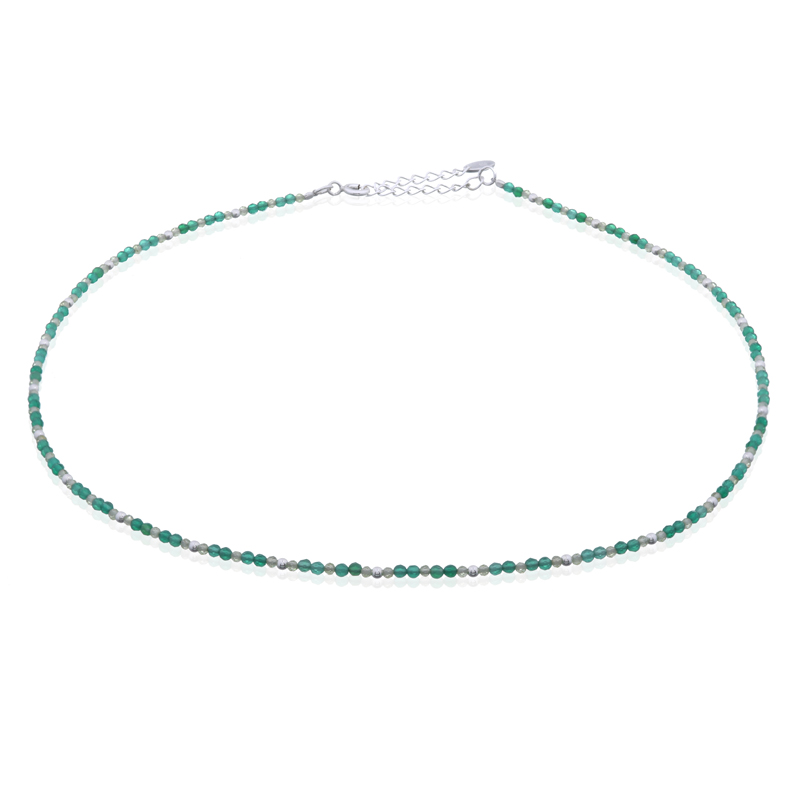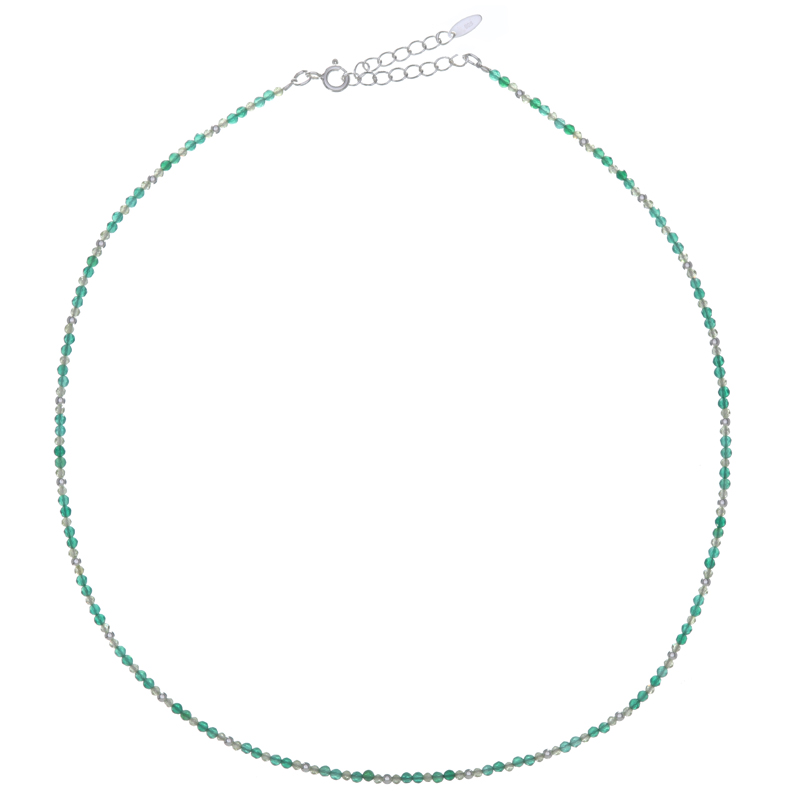 This stunning necklace features beaded green agate and peridot, creating a vibrant accessory that catches the eye. Green agate is known for its grounding properties, making it a favorite among those seeking balance. Enhance your inventory with this beautiful piece today!