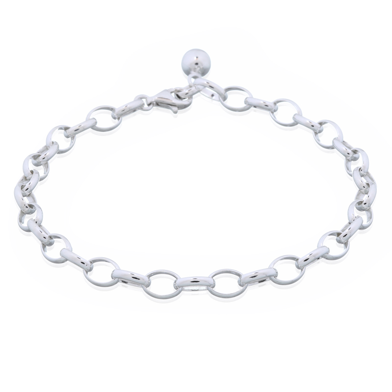 Secured with pear shaped lobster clasp and embellished with one shiny sphere this Hallmarked 925 Sterling Silver Rollo bracelet offers itself to be embellished with the prettiest charms! This chain bracelet is a silver jewelry basic and invites to let your inspiration run free and start to add all the cutest components to make this bracelet stand out on the wrist of a woman. It can be slightly lengthened or shortened for a perfect fit by fasten the clasp onto one of the corresponding links. Link Dimensions : 7 x 5 x 1. 5 mm.