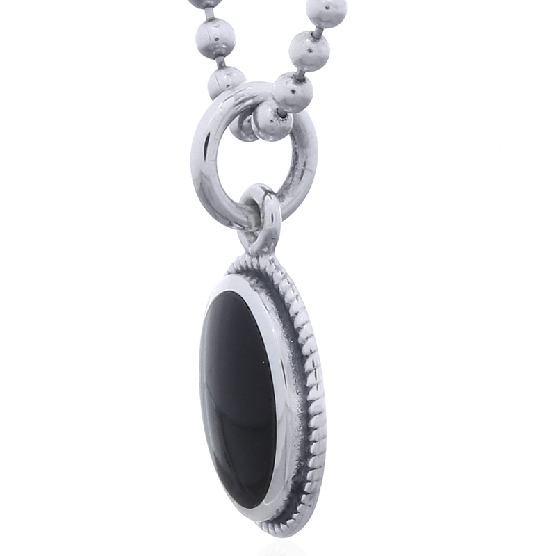 The striking black stone of this oval pendant makes a bold statement. Its sophisticated look enhances any outfit, providing a unique touch that customers will love, whether they’re dressing up for a night out or seeking stylish everyday wear.