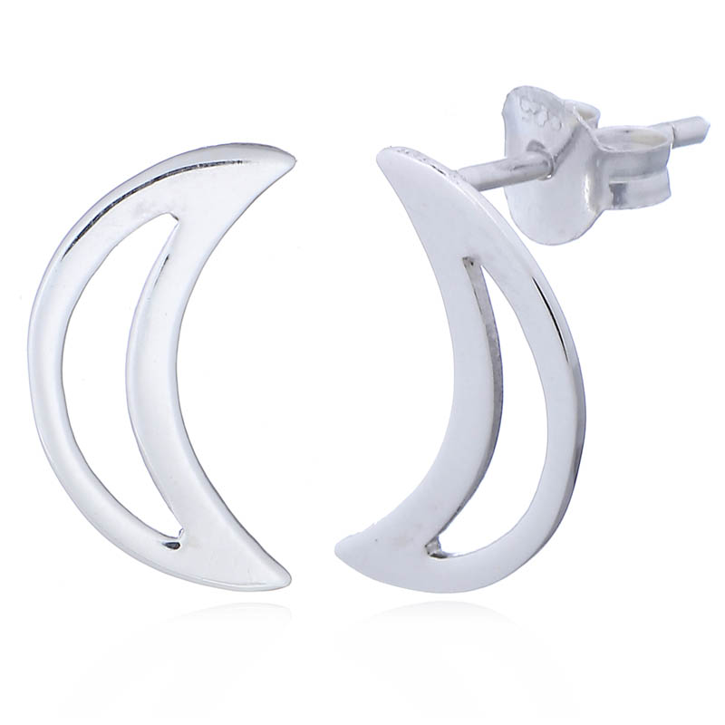 925 Sterling Silver Stud earrings feature dainty small open moons embellishing the features with a night sky theme and the very popular crescent shape that is delicate considering it is composed of one outline of high polished Hallmarked 925 silver. Just a touch of silver and a timeless classy style makes these earrings versatile and discreet. They provide the finishing touch to the looks and their dainty shapes are perceived as charming silver jewelry. Secured with silver butterfly backs these Ear Studs won’t get lost easily.