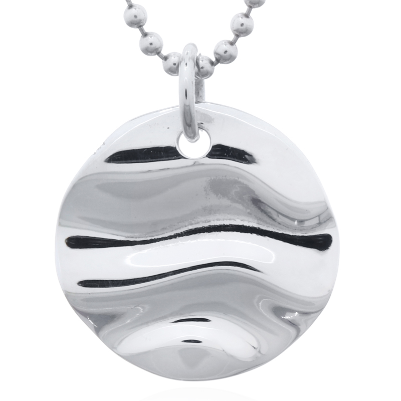 This eye-catching pendant showcases a beautiful rippled disc design that adds a touch of elegance to any outfit. Its unique texture not only enhances its visual appeal but also makes it a standout piece that can be easily paired with various chains for a stylish look.
