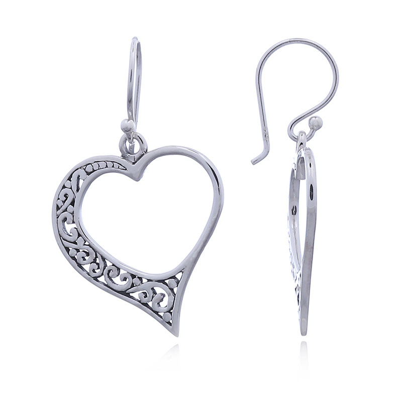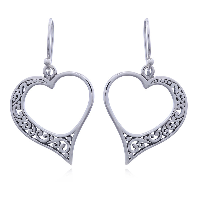 Classical easy to wear pair of 925 sterling silver heart earrings. Excellent detail a must wear for ladies who are happily in love.