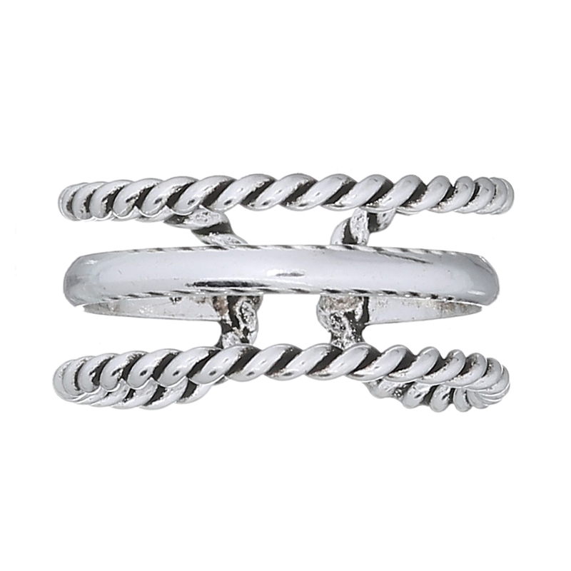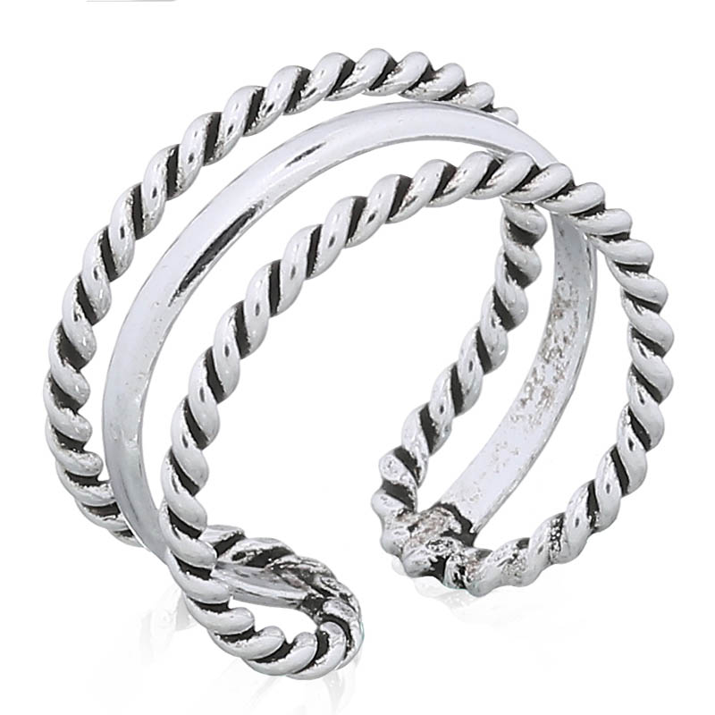 Adjustable Plain Wire In Parallel Twisted Sterling Silver Ring