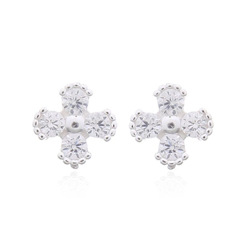 These beaded four-petal earrings with white cubic zirconia add a playful touch to classic elegance. Perfect for those seeking unique pieces, they offer a delightful blend of whimsy and sophistication, making them a must-have for any jewelry retailer.