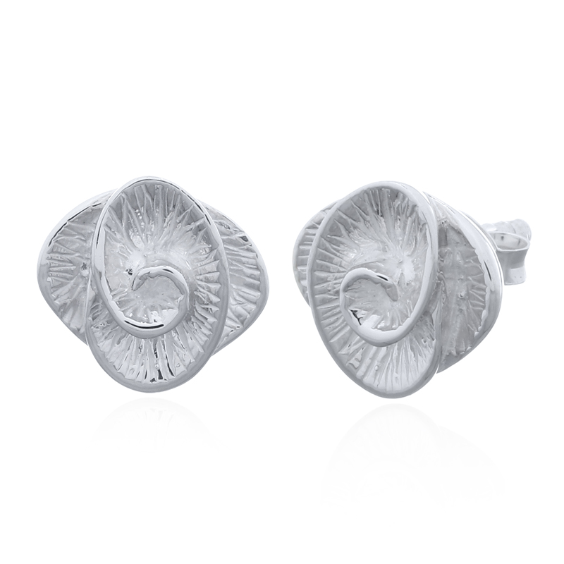 Adorable twirled flowers 925 Sterling Silver designer Stud earrings feature the dainty beauty of their gorgeous bright silver shining delicately textured petals. Sublime high fashion small Planet Silver earrings show a romantic touch and are a pure joy to put on. Secured with silver butterfly backs – these Studs won’t get easily lost. This lovely silver jewelry adds a generous amount of femininity and a good portion of elegance to a woman’s style. Matched with the pendant Product ID: 33761 a beautiful set will embellish a woman with a sophisticated flair.