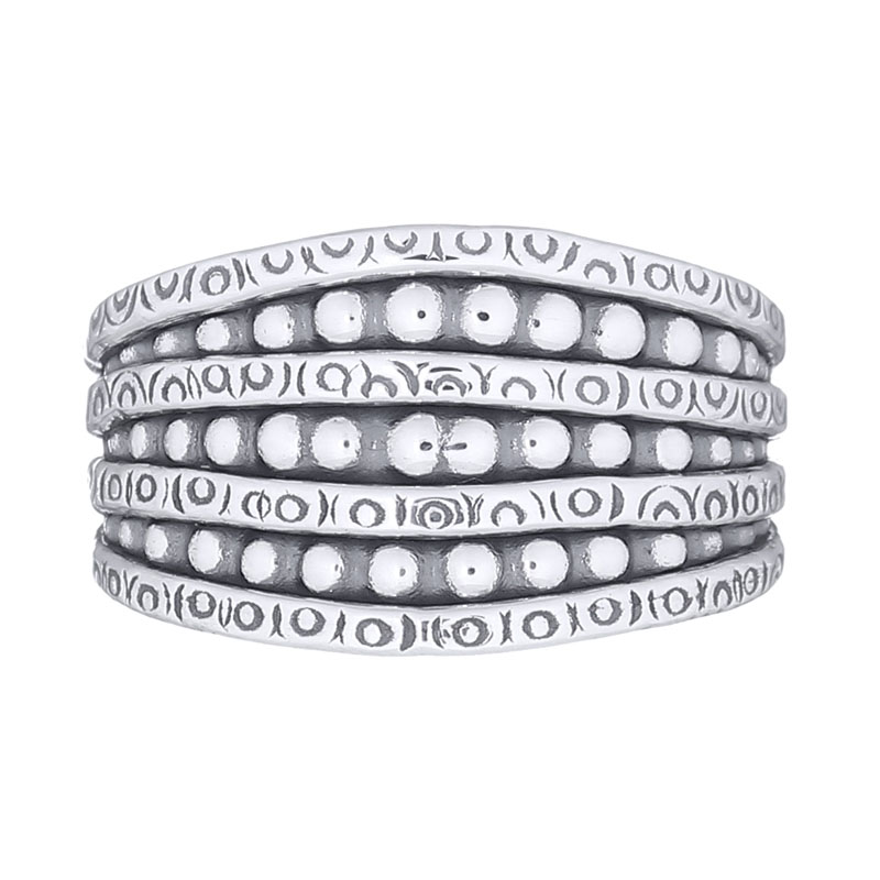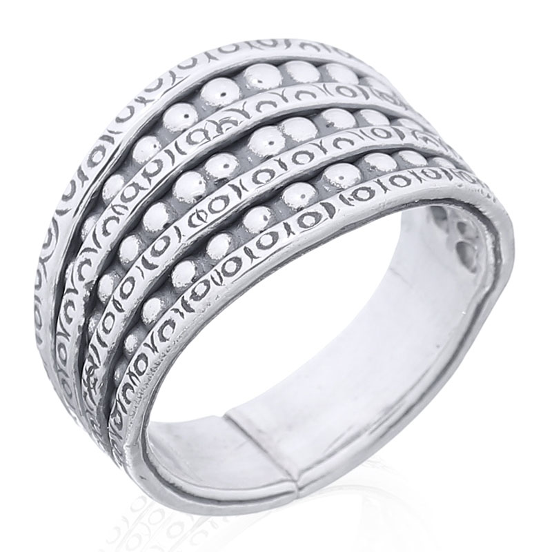 Add a touch of sophistication with this ring featuring alternated beaded spiral lines. Its intricate detailing offers a unique visual appeal, perfect for retailers wanting to provide their customers with stylish options that elevate everyday looks.