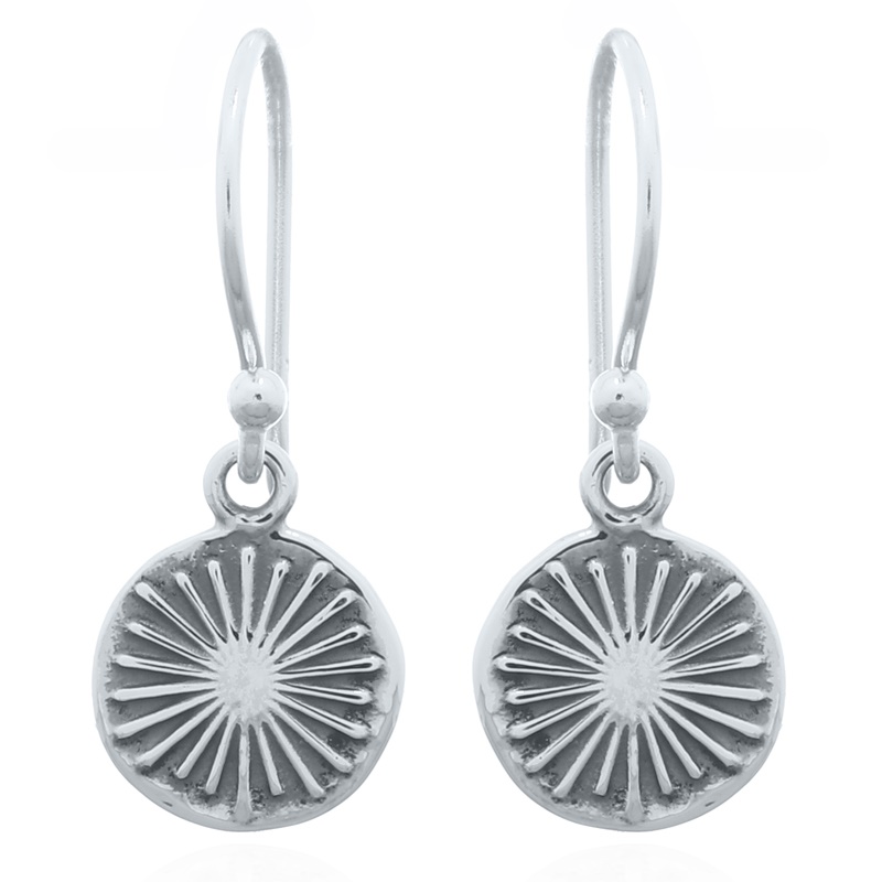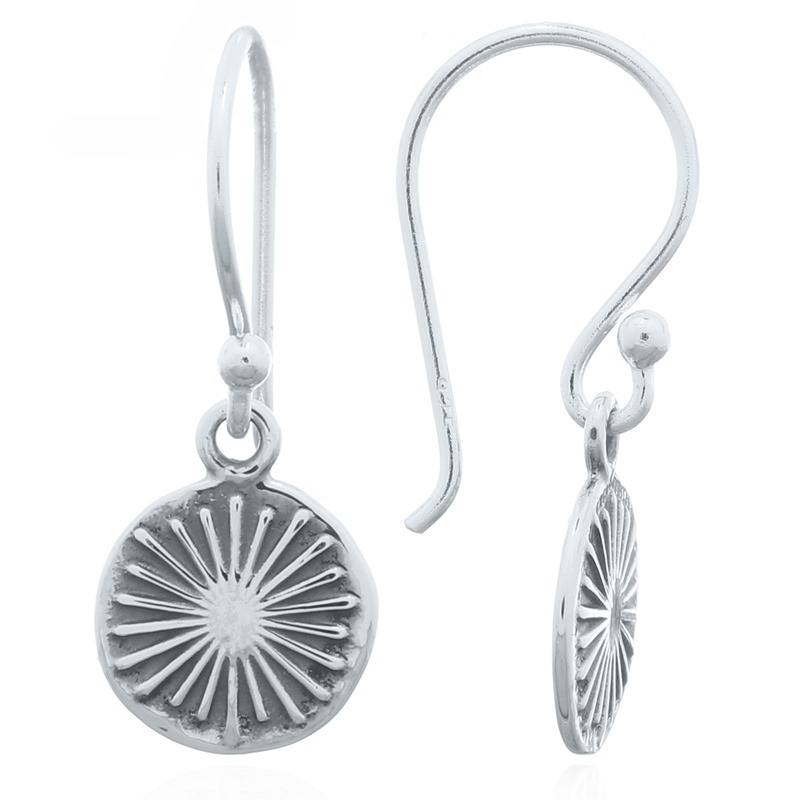 With an ancient irregular sun pattern, these silver dangle earrings offer a bold and unique look, ideal for customers who appreciate vintage-inspired designs. Add this standout piece to your lineup for increased sales. Unique design enhances customer appeal.