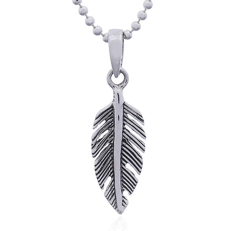 A pendant crafted in the shape of a feather displays a good mixture of polished raised surfaces and oxidized recesses of the design that amplifies the beauty of the piece. Feather pendant of great quality created in sterling silver will look great with a variety of outfits.