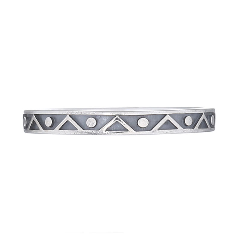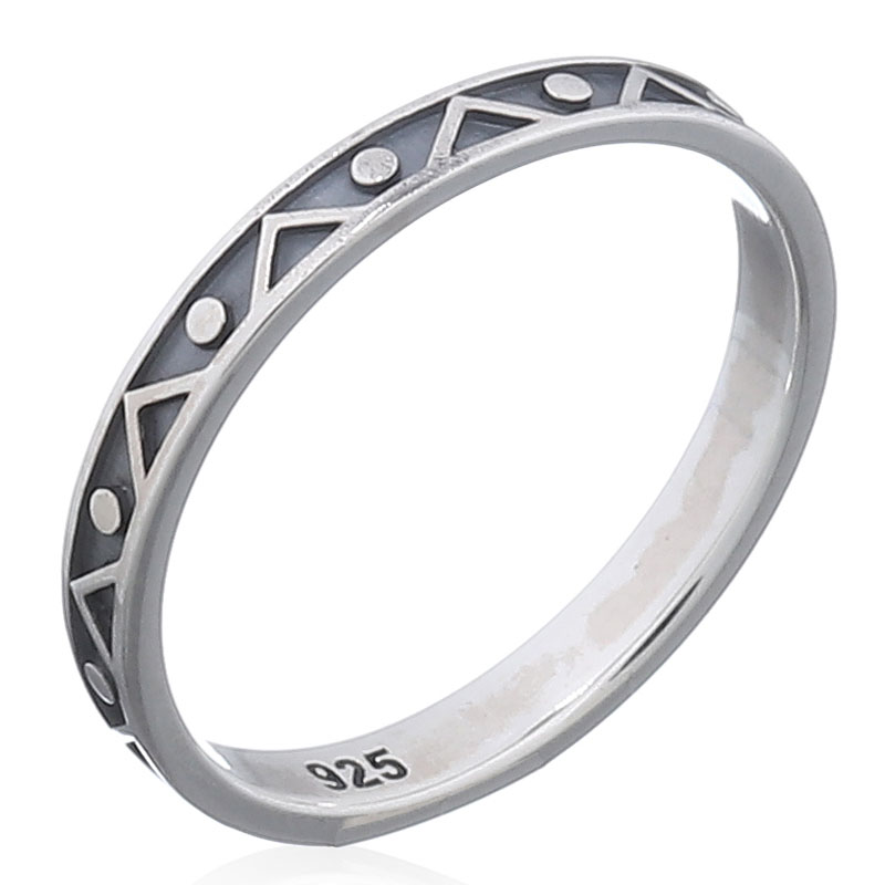 Sterling silver ring is beautiful with the angular wave what have a dot in each angel.