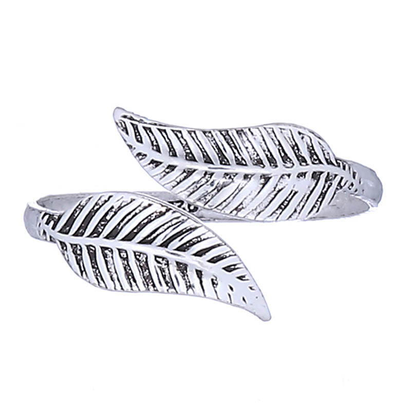 Antiqued 925 Silver Toe Ring Softly Curved Leaves