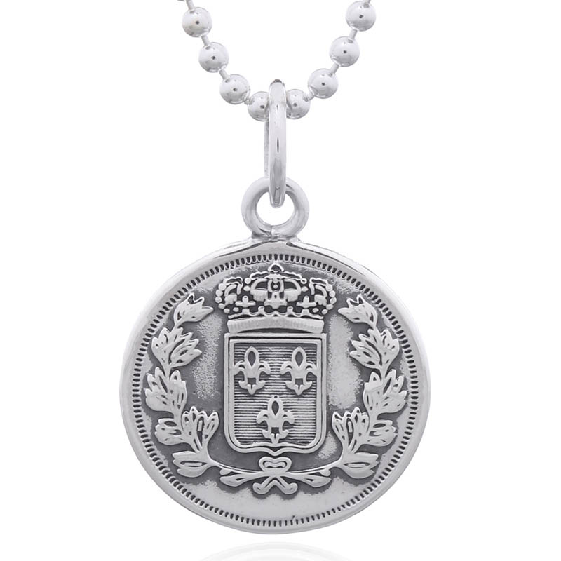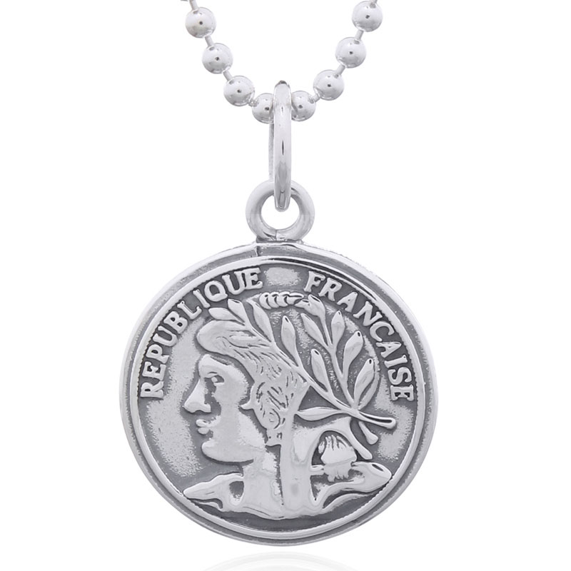 An antiqued French coin pendant that brings vintage charm to any collection. Retailers can appeal to customers seeking unique, historical pieces that reflect artistry and craftsmanship, perfect for adding character to their jewelry offerings.