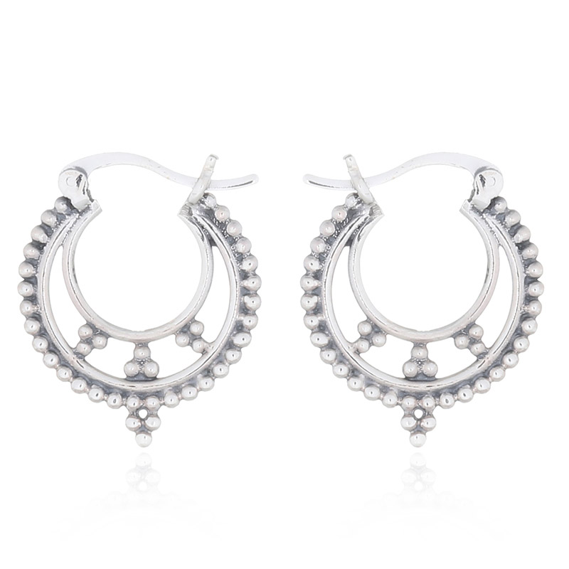 These antique beaded layer circle hoop earrings offer a stunning combination of classic and modern design. Their layered appearance adds depth, making them an attractive option for retailers targeting customers who appreciate unique, standout pieces.