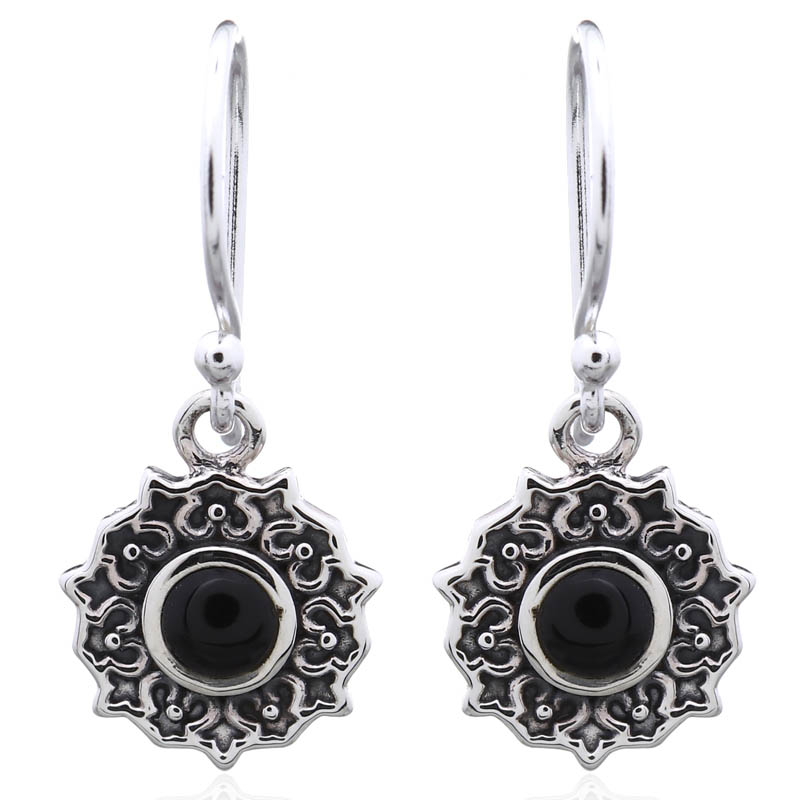 These stunning dangler earrings feature a bold black stone, making them a perfect choice for retailers aiming to attract fashion-forward customers. Their unique design is sure to elevate any outfit.