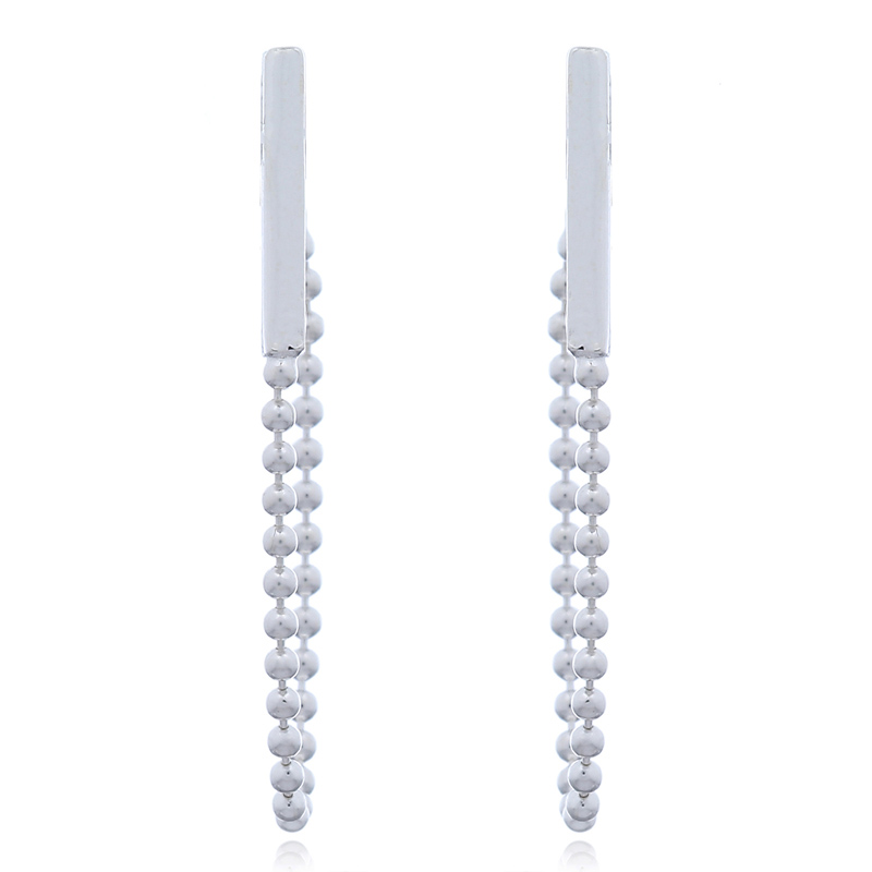 Delicate ball chains and 925 silver bar for this modern and newest trend front back of stud earrings made in 925 sterling silver. A sure head turner!