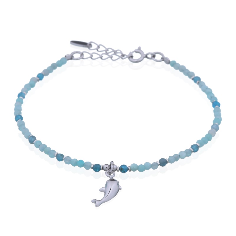 This beaded amazonite bracelet with a silver dolphin charm captures the essence of the ocean. Its calming colors and playful design appeal to customers who love nature-inspired jewelry. Stock this charming bracelet to attract beach lovers and ocean enthusiasts!