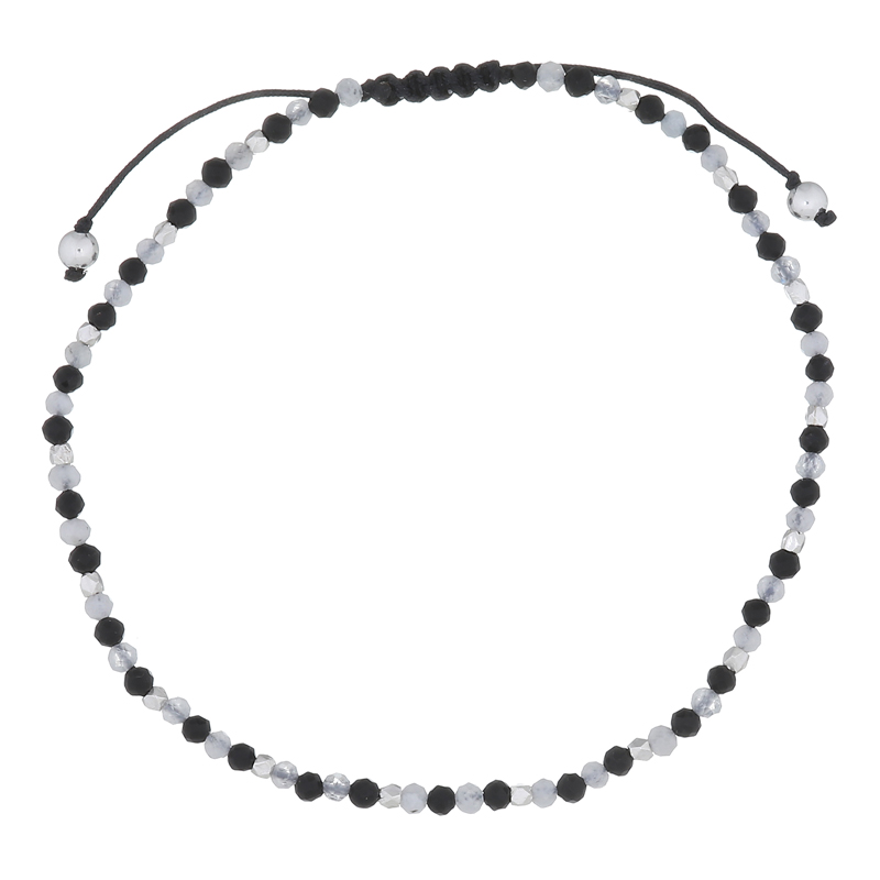 Enhance your collection with a striking bracelet combining black agate, rainbow moonstone, and silver balls. A versatile piece that complements any style. Enjoy our easy shopping experience.