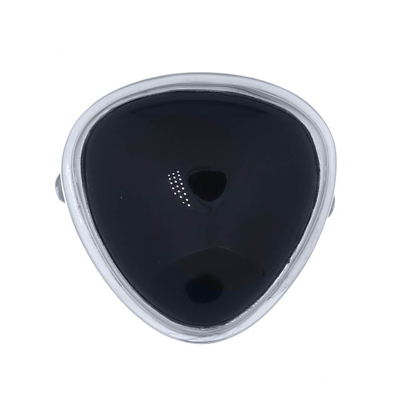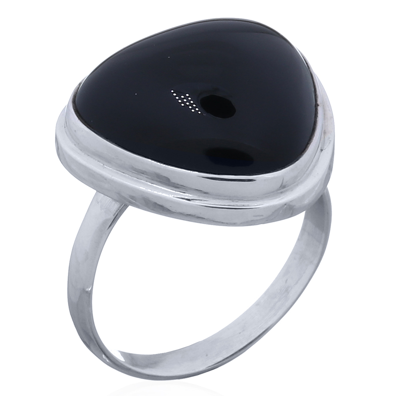 Black Agate Gemstone Sterling Silver Ring Smoothed Triangle