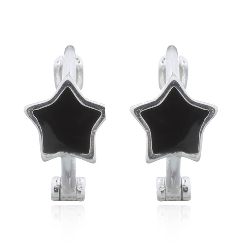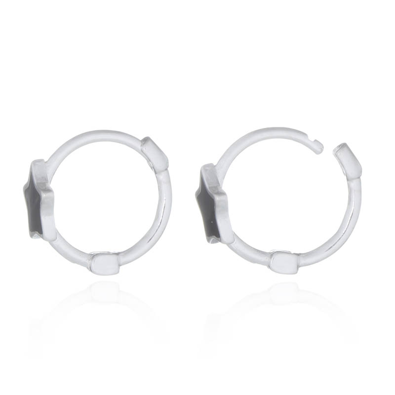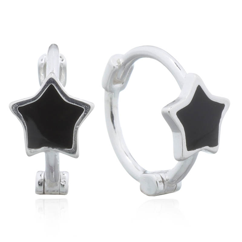 Black star huggie hoop earrings in 925 silver offer a celestial-inspired design with a touch of edge. Retailers can market these to customers who love playful, starry accessories.