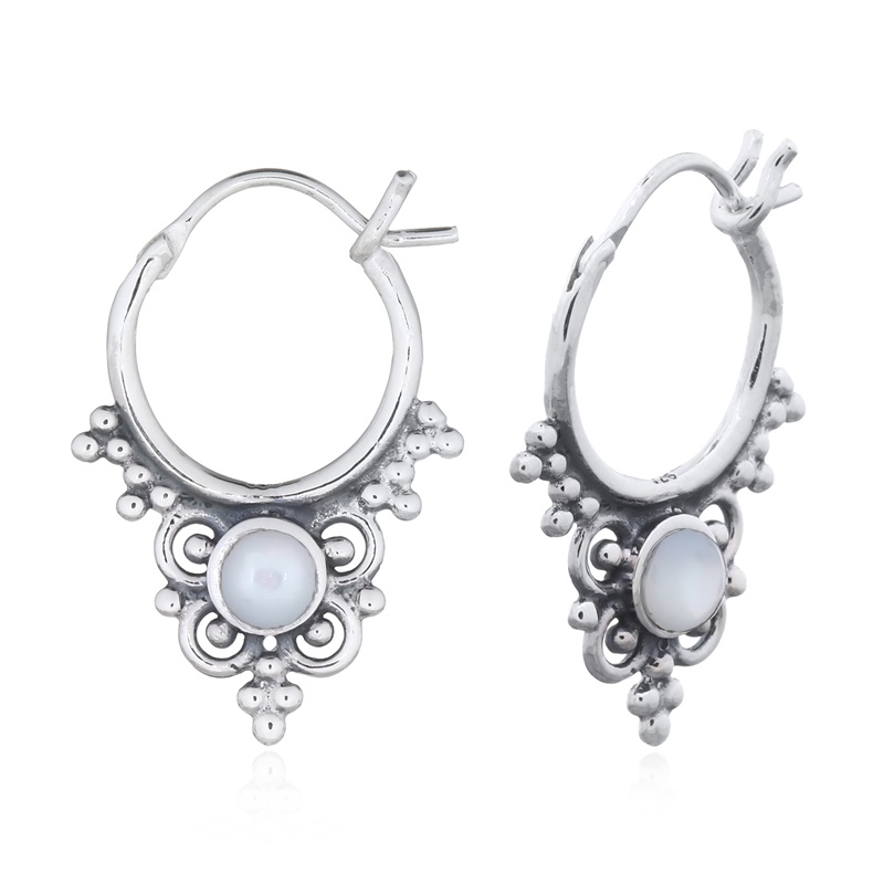 Bring elegance to your store with these antiqued hoop earrings featuring mother of pearl. A timeless boho design that will captivate your customers. Enjoy the benefits of high-quality products and factory pricing.