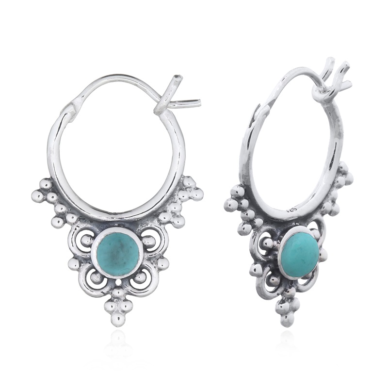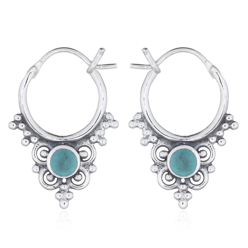Enhance your offerings with these antiqued hoop earrings featuring synthetic green stones. The boho style ensures they stand out. Benefit from our reliable manufacturing and exceptional wholesale prices.