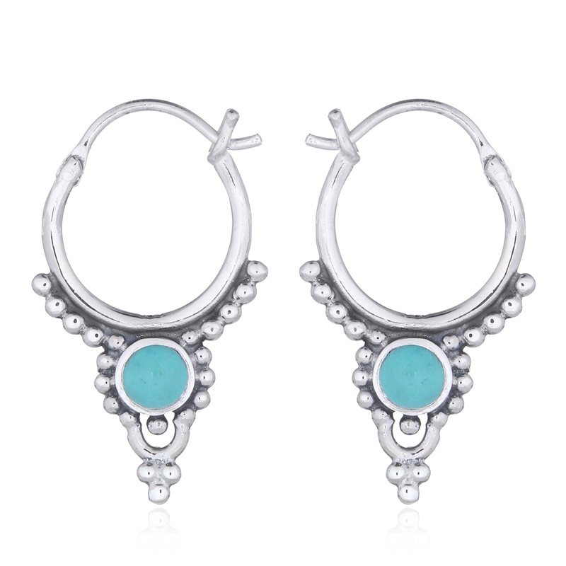 Featuring synthetic green stones, these boho ethnic style hoop earrings are a great addition to your collection. Ideal for adding a pop of color and style. Benefit from our competitive wholesale prices and exceptional quality.