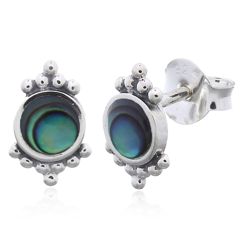 Encased in a chic silver dotted frame, each stud radiates bohemian elegance that effortlessly enhances any look. Lightweight and comfortable, these earrings are ideal for both everyday wear and special occasions.