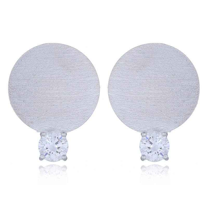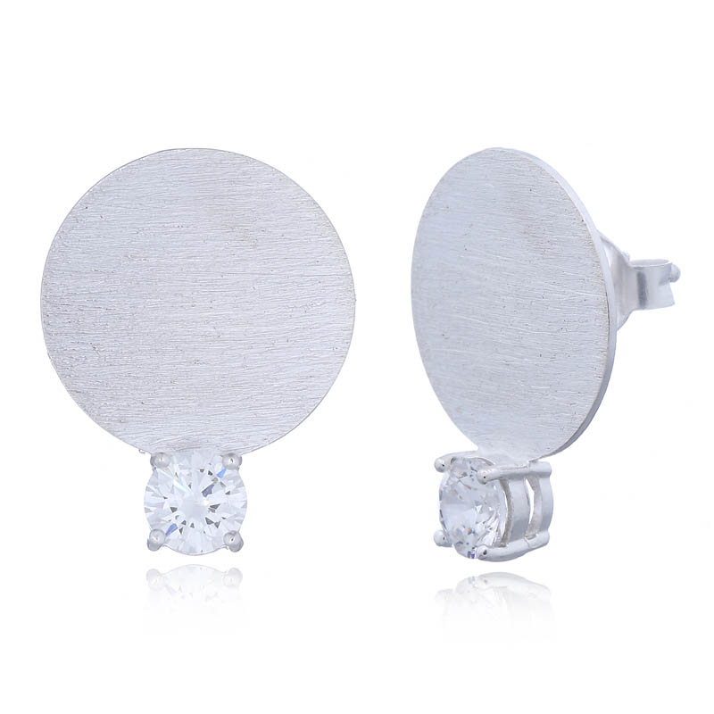 15mm silver brushed flat disc and cubic zirconia crystal 5mm stud earring.