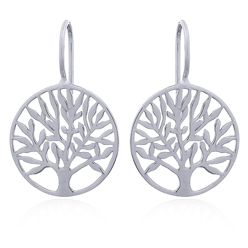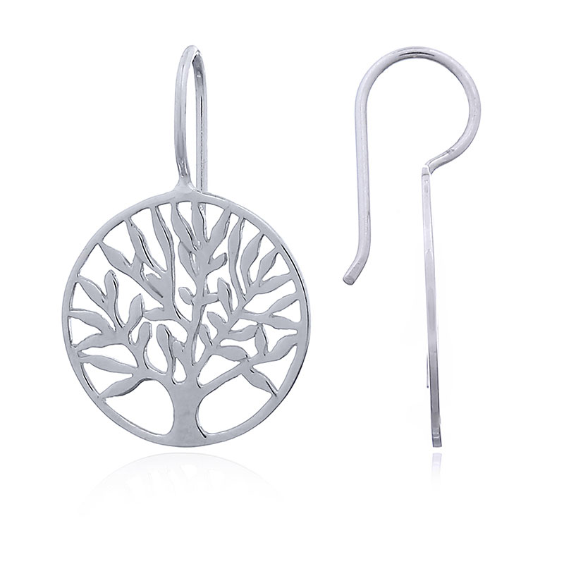 The tree of life is sometimes viewed as a representation of the life of every human on the planet: the roots of the tree represent the beliefs of each particular person the trunk and branches the body and mind respectively that should produce wisdom represented by the leaves of the tree. This pair of cast Sterling Silver tree of life drop earrings display very wide branches covered by abundant leaves thus encouraging us to expand our mind and attain greater wisdom.