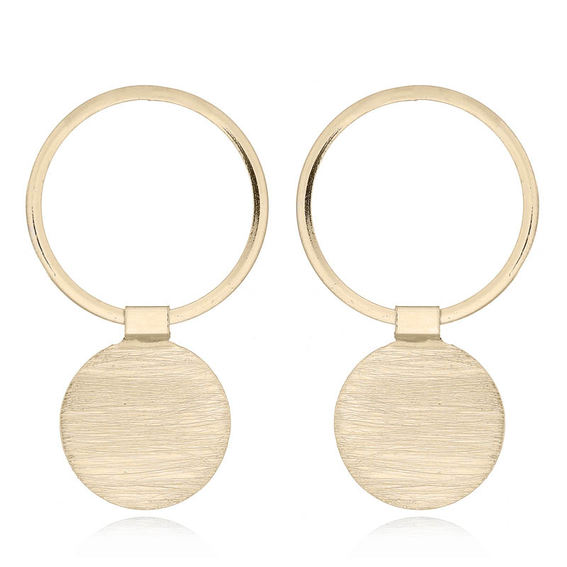 A square profile open circle with a brushed disc attached via a square-tube hinge create attractive gold plated 925 silver stud earrings.
