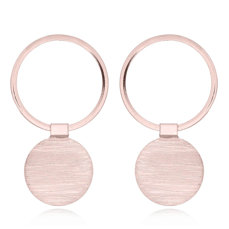 A square profile open circle with a brushed disc attached via a square-tube hinge create attractive rose gold plated 925 silver stud earrings.