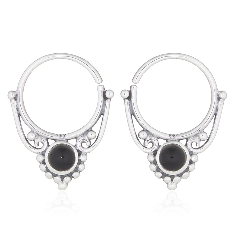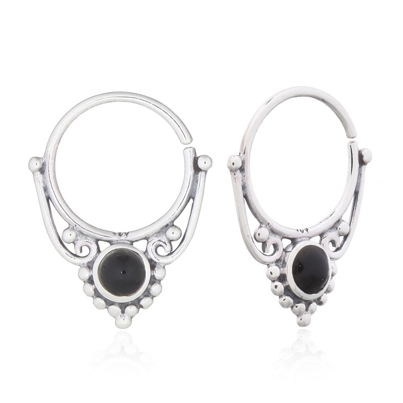 Classic boho style shines through these septum hoops with synthetic black stone. Their vintage appeal and sterling silver craftsmanship make them a standout addition. Enjoy products manufactured under strict quality control measures.