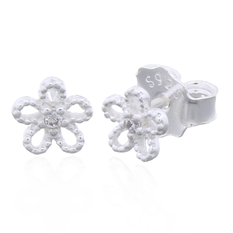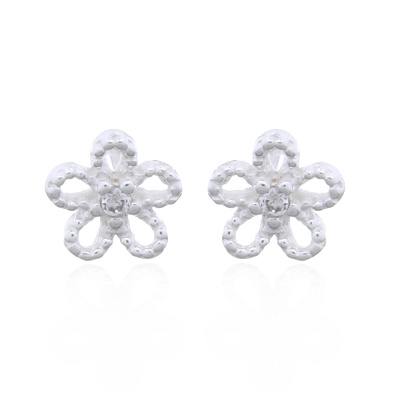 Clear CZ open flower stud earrings, adorned with beaded petals, offer a delicate and intricate look. Perfect for nature lovers, they are ideal for both casual and formal occasions. Include these earrings in your collection to entice customers who appreciate fine details!