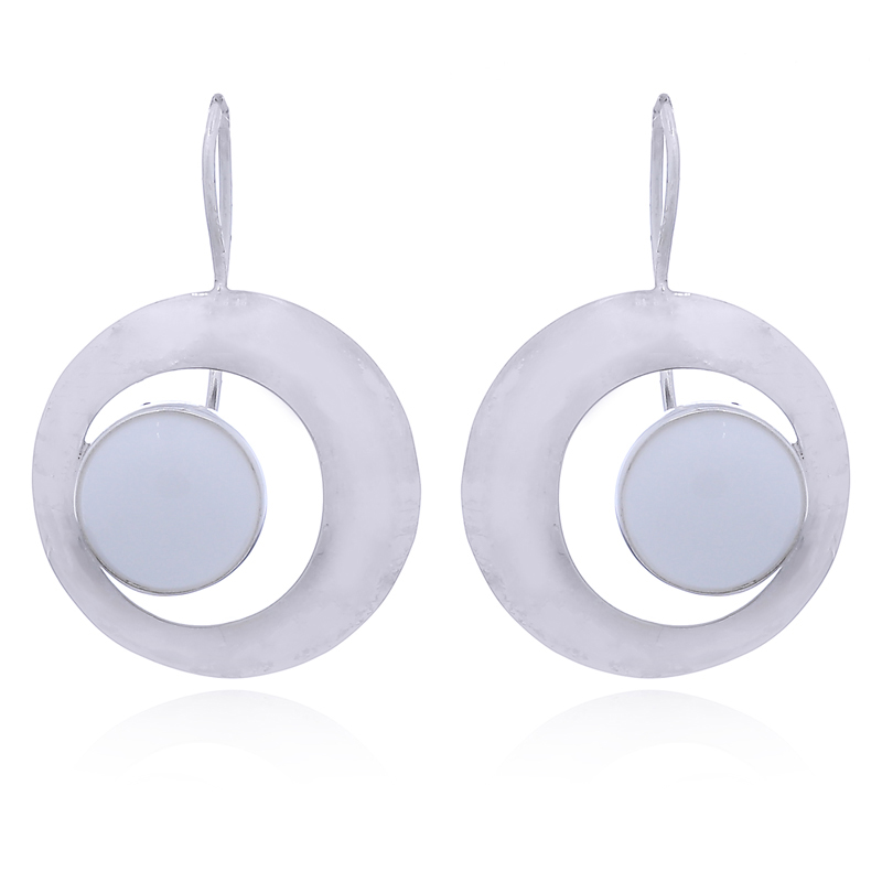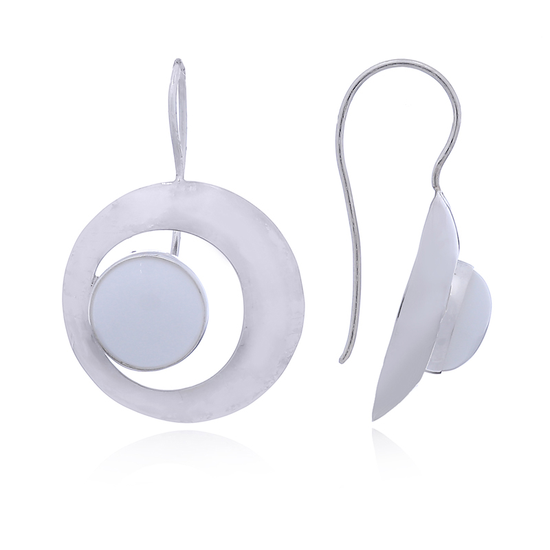 Convex 925 Sterling Silver hoop Drop earrings feature round cut Black Agate cabochons convex to nearly semi-spherical shape fabulously framed by high polished silver and nestling on the inside of the convex silver hoop. Hallmarked 925 silver gemstone drop earrings on fixed hooks add a ladylike touch to a woman’s appearance. Flattering the features with a bright silver shine the elegant contrast of the glossy black gemstones and an ultra fashionable design produces a gemstone silver jewelry that stands out delightfully.