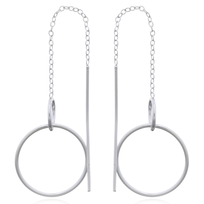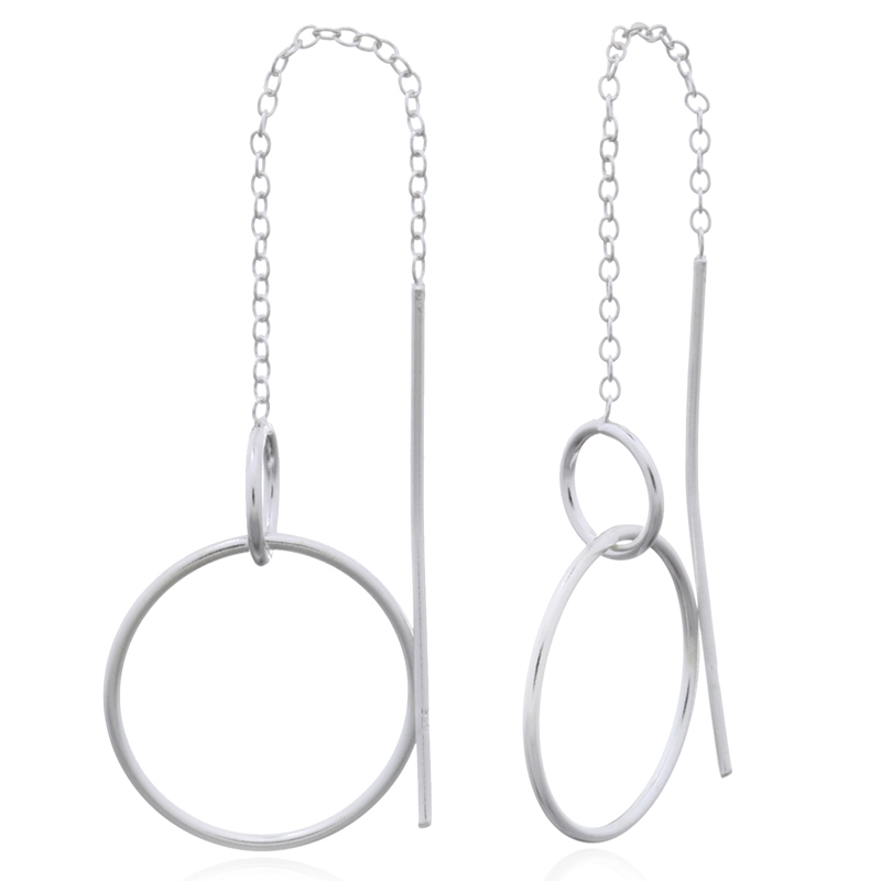 Coupled open hoops with chain threaders in 925 silver provide a chic and contemporary look. Perfect for adding a modern edge to your inventory. Enjoy factory pricing and boost your profit margins.